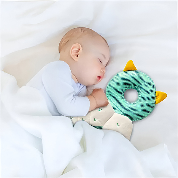 Ta mehka in udobna blazina za otroško glavo je lahko pomirjujoč spremljevalec vašega dojenčka med dremežem in pred spanjem. Plišast material, ki diha, je nežen do otrokove kože ter zagotavlja udobje in mir. Ta poznana, prijetna prisotnost pomaga pomiriti vašega dojenčka, tako da se lažje sprosti in zaspi.