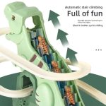 DINOCLIMBER vključuje dinozavrski tobogan z glasbo in živahnimi lučkami, ki ustvarja doživetje pustolovščine, ko dinozavri plezajo po stopnicah ob ritmu in svetlobnih učinkih.