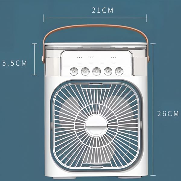 Ta prenosna klimatska naprava s 600-mililitrskim rezervoarjem za vodo zagotavlja daljše hlajenje in vlaženje, kar je idealno za večurno uporabo brez pogostega polnjenja.